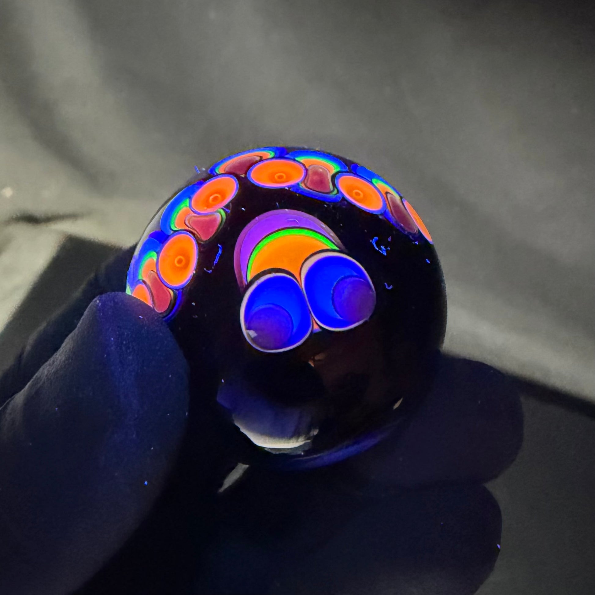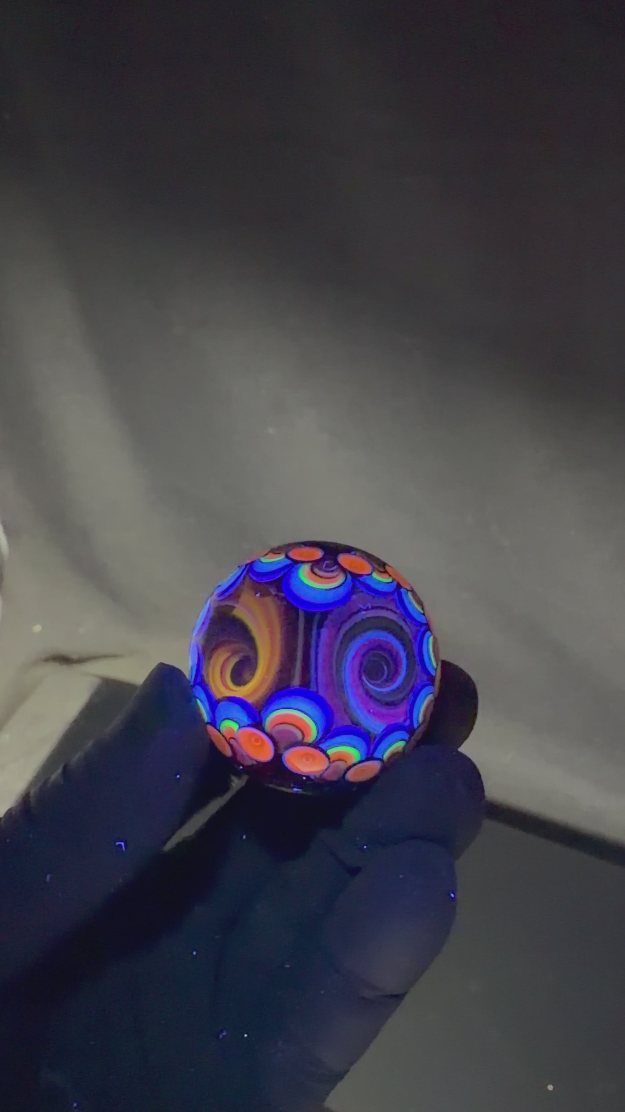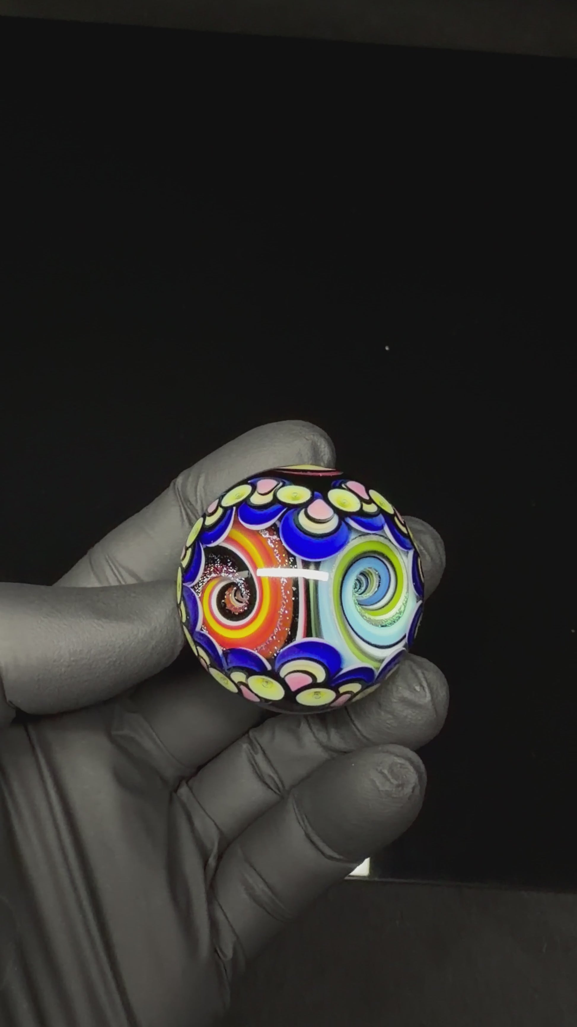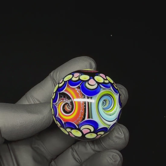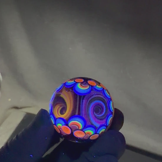39mm UV Double Vortex Marble made by Paulie. Loaded with uv and color. Signed and dated Paulie 3/26
